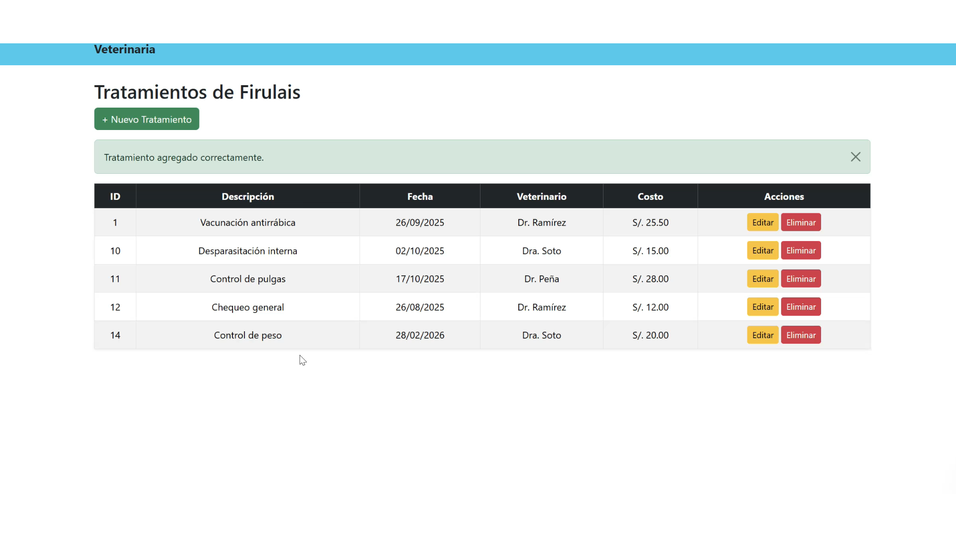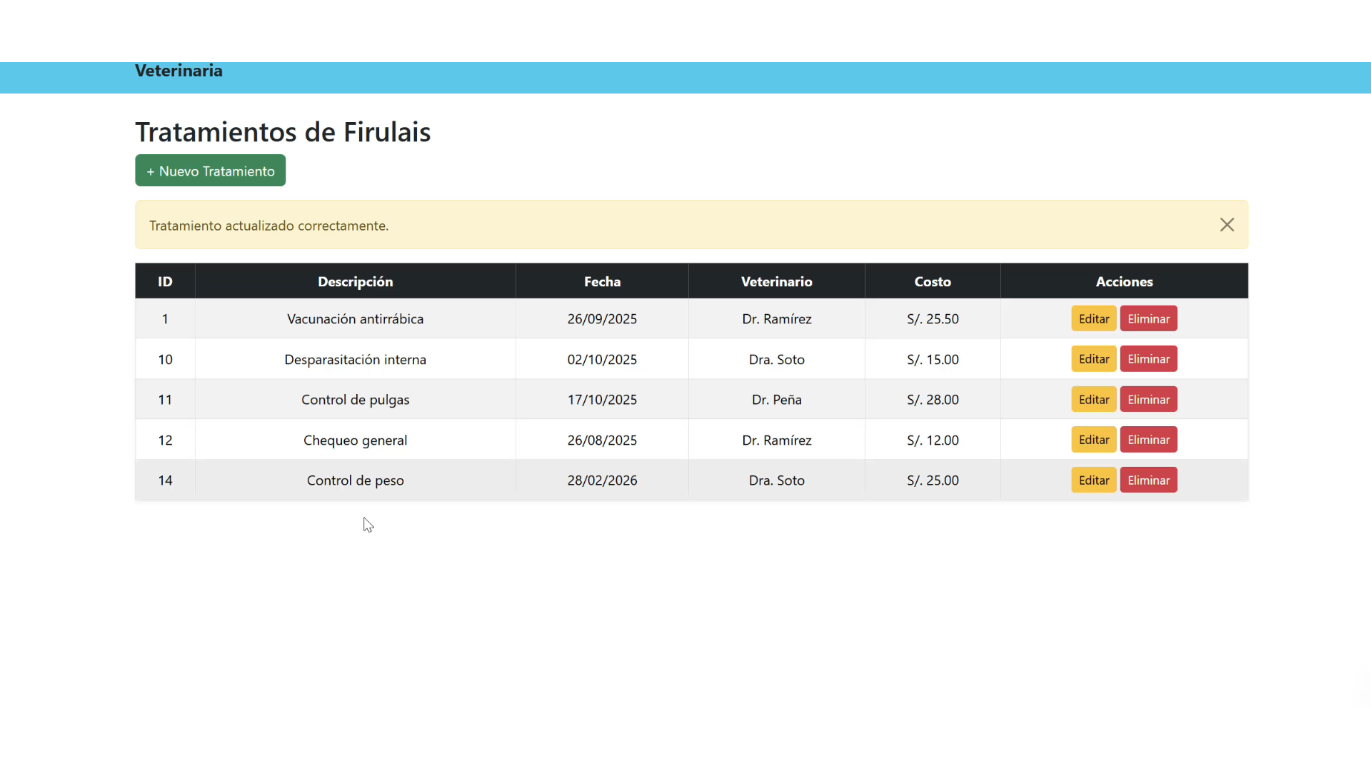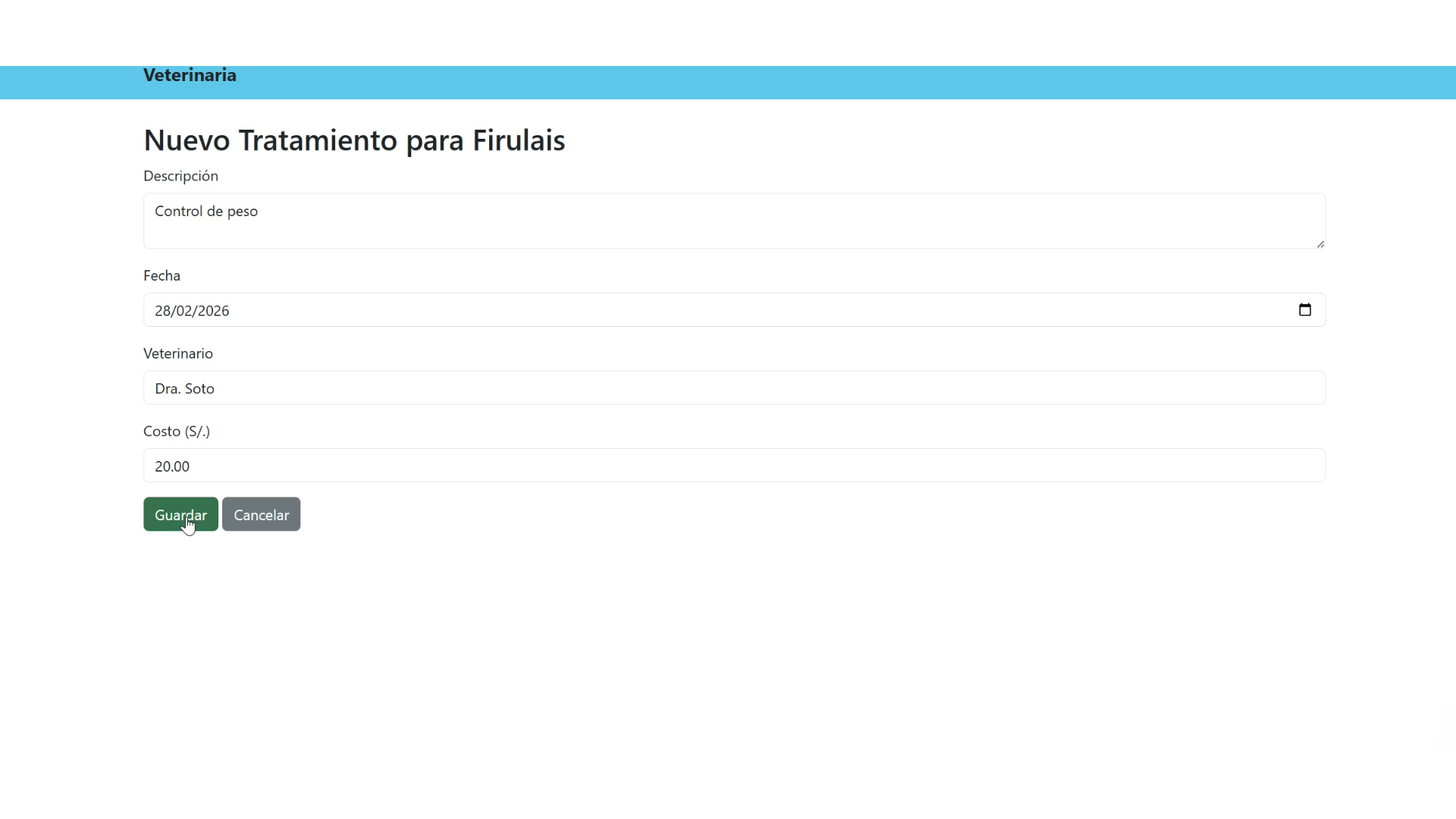 Desarrollo de un sistema web para gestionar una vetrinaria con tratamientos
