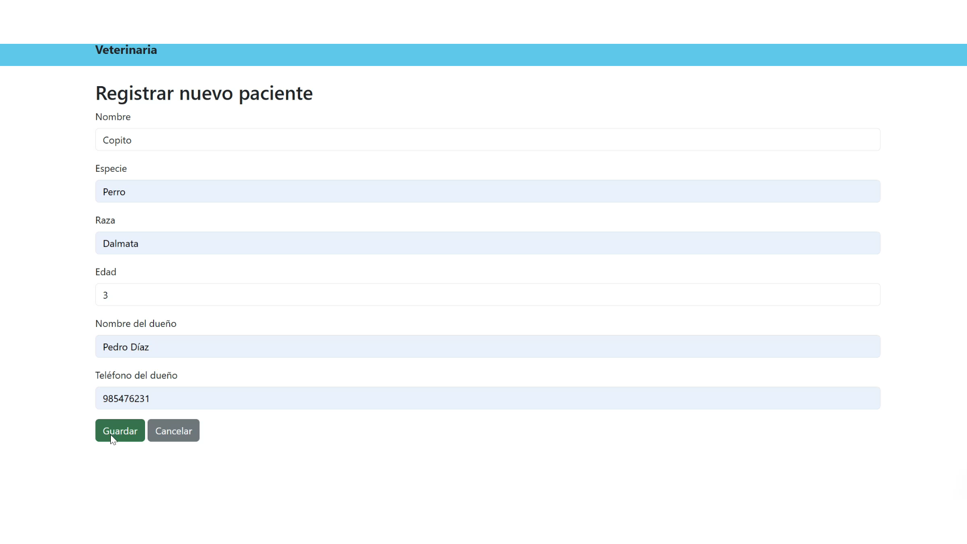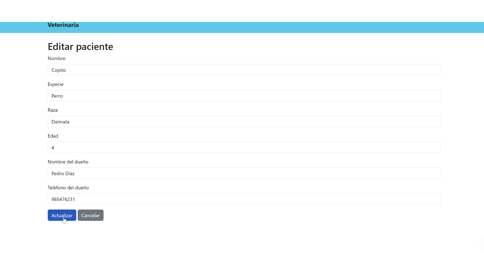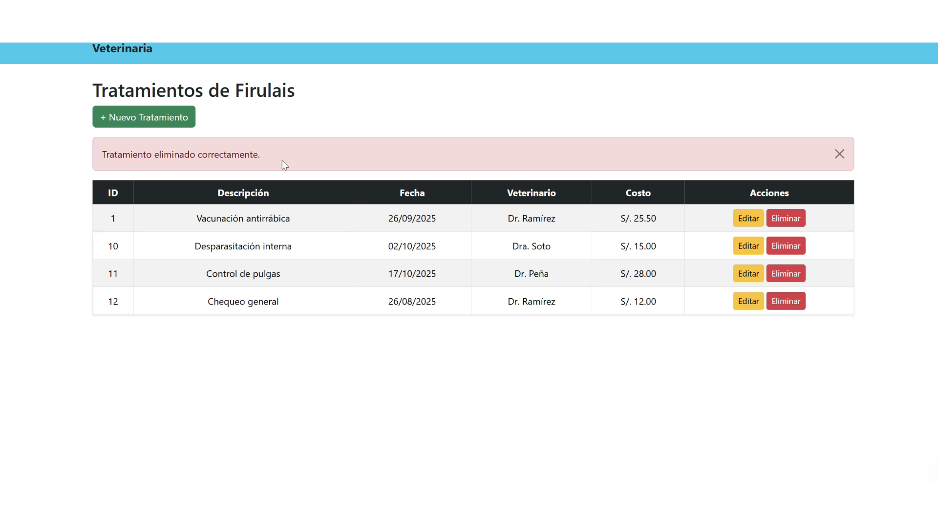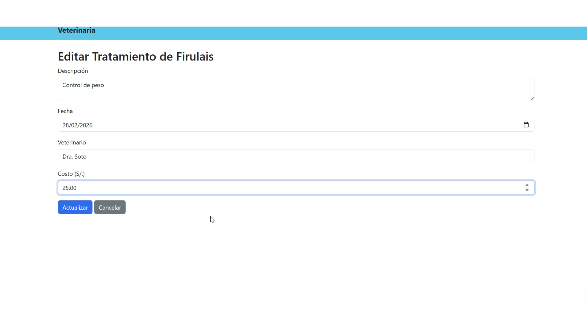 Desarrollo de un sistema web para gestionar una vetrinaria con tratamientos