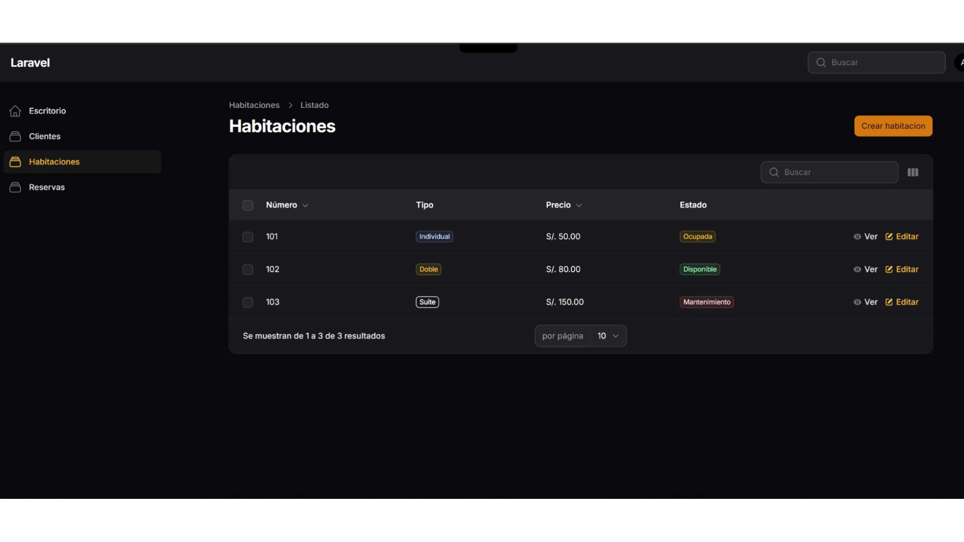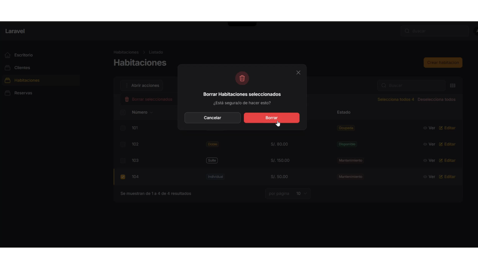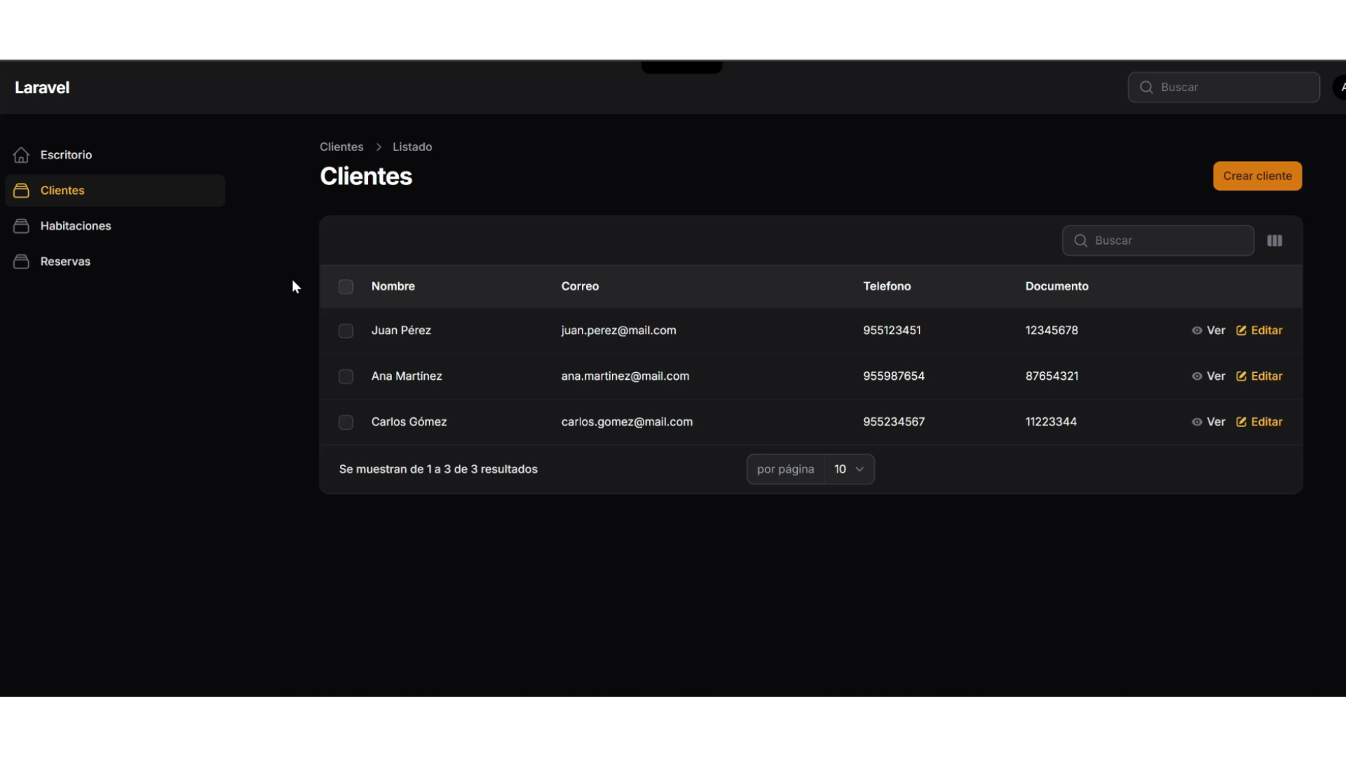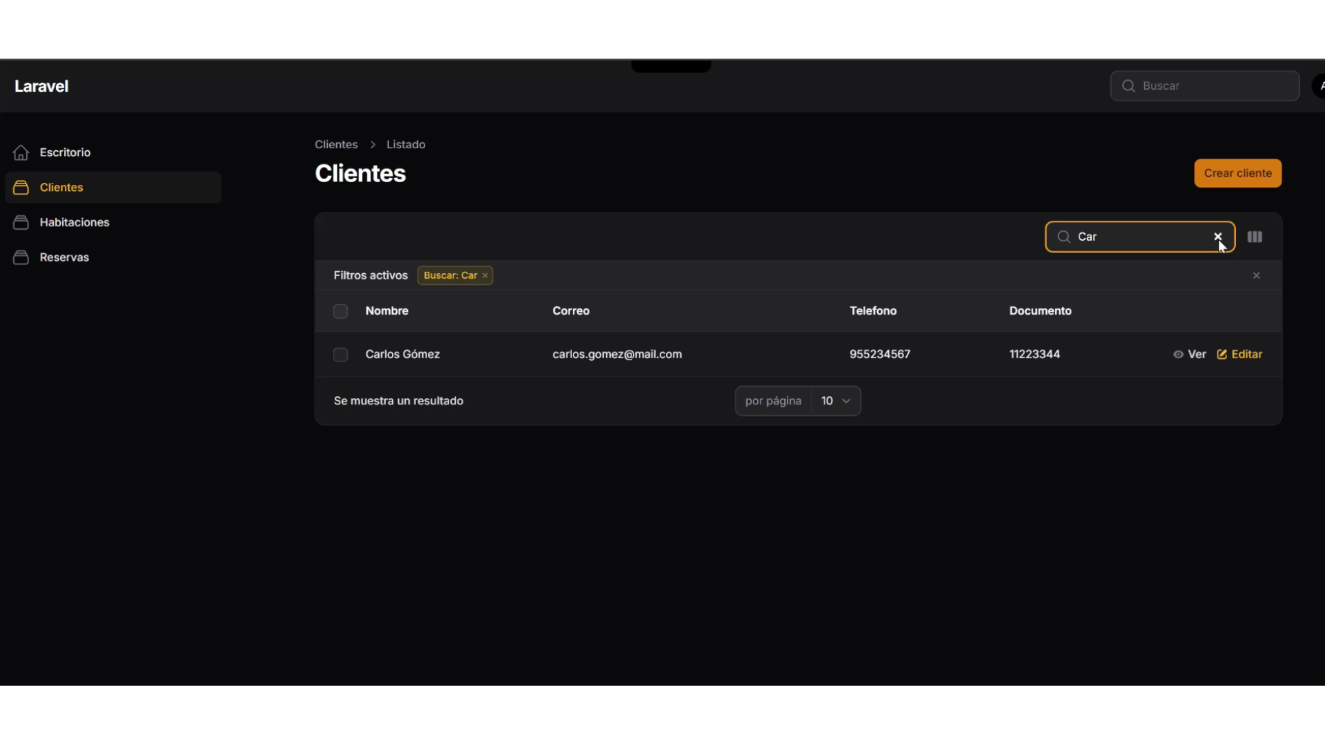 Desarrollé un sistema web de gestión de reservas hoteleras con Laravel y Filament, implementando CRUD de clientes, habitaciones y reservas con tablas relacionadas para asegurar integridad de datos. Incorporé autenticación con Filament y un dashboard con métricas en tiempo real, incluyendo gráfico tipo dona para el estado de reservas, gráfico lineal comparativo mensual y paneles con indicadores clave (clientes, habitaciones disponibles y ocupadas, reservas activas, canceladas y finalizadas). Integré desarrollo full-stack, modelado relacional y visualización de datos en una solución eficiente y escalable orientada a la toma de decisiones.